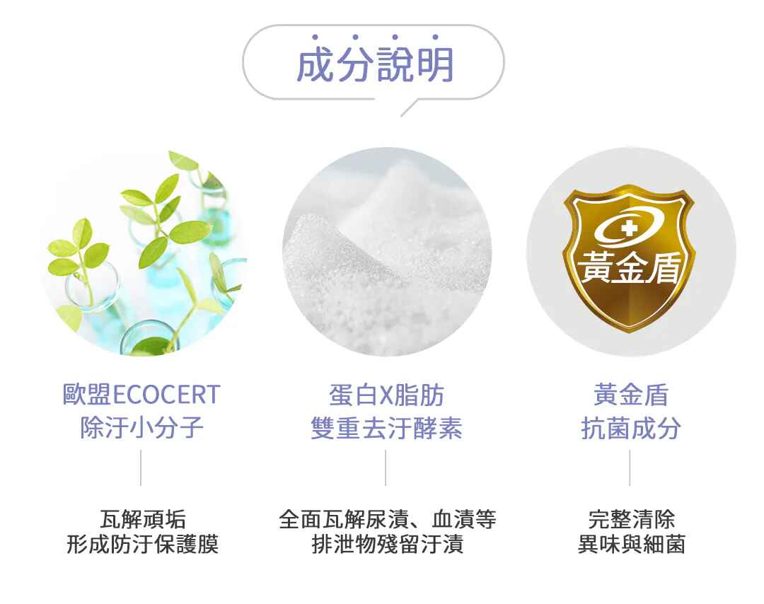 ►主要成分:純水、界面活性劑、小分子除汙劑、蛋白分解酵素、脂肪分解酵素、有機矽氧烷銨鹽、茉莉綠茶香氛。