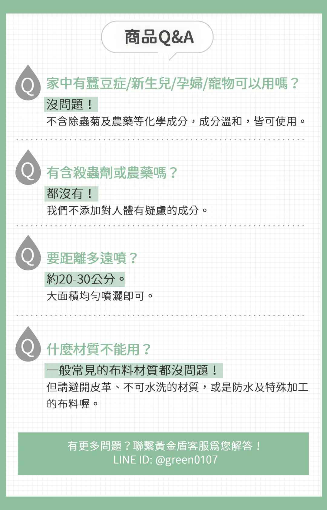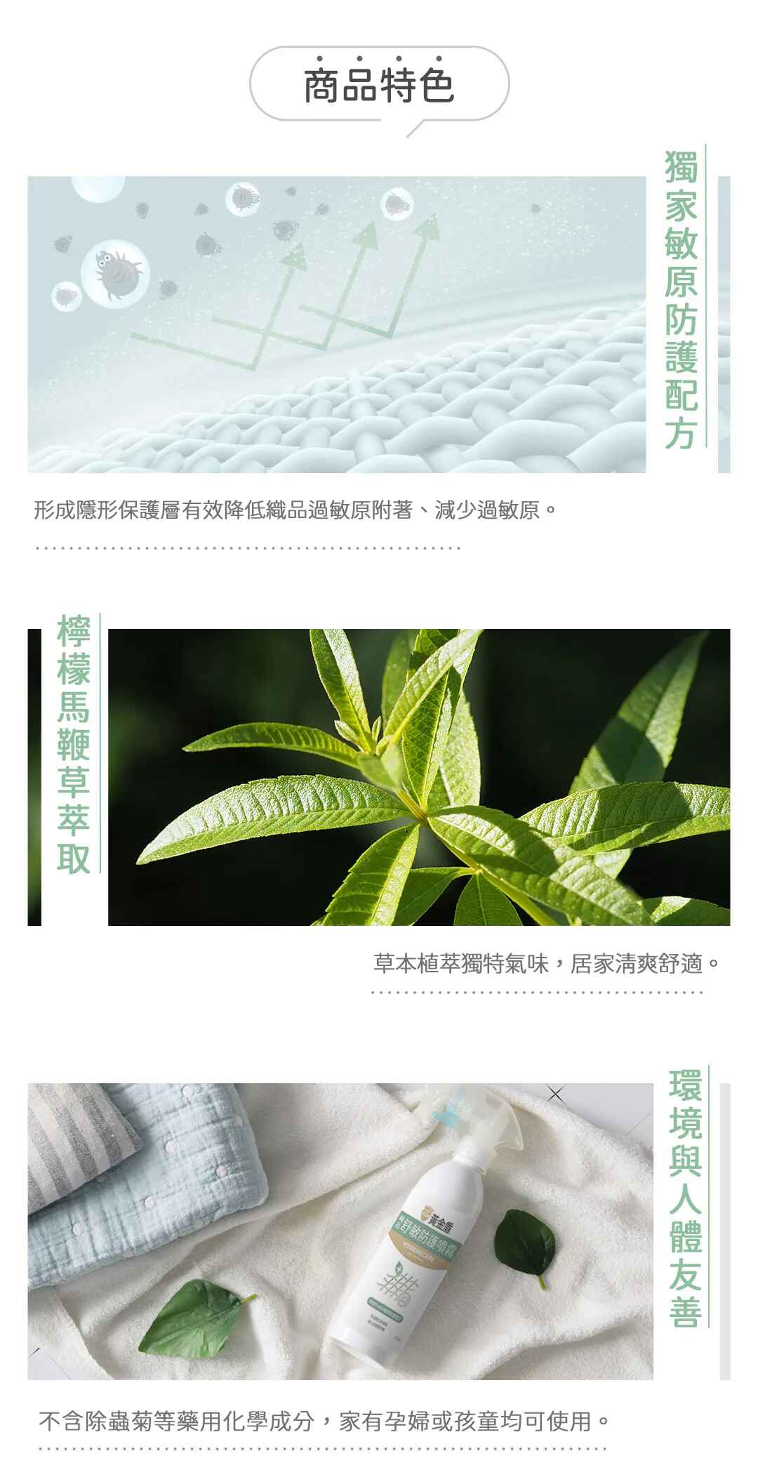 ►用途:噴灑於織品,形成隱形保護層減少過敏原附著。