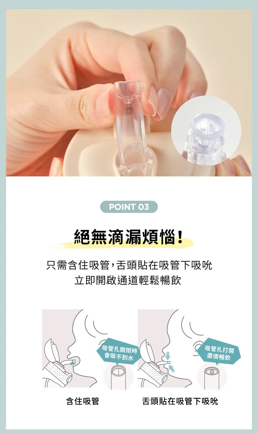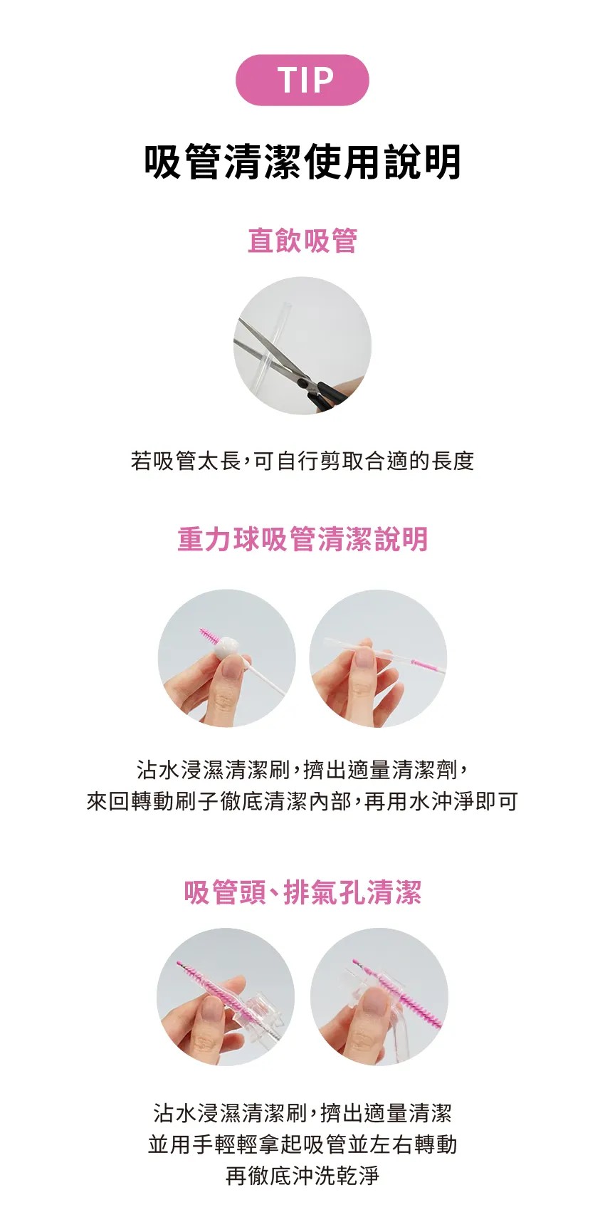 *使用吸管時需含住吸管,舌頭貼在吸管下吸吮就可順暢吸水