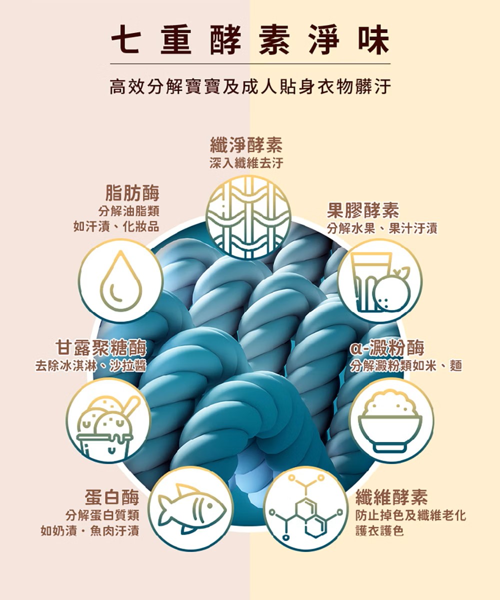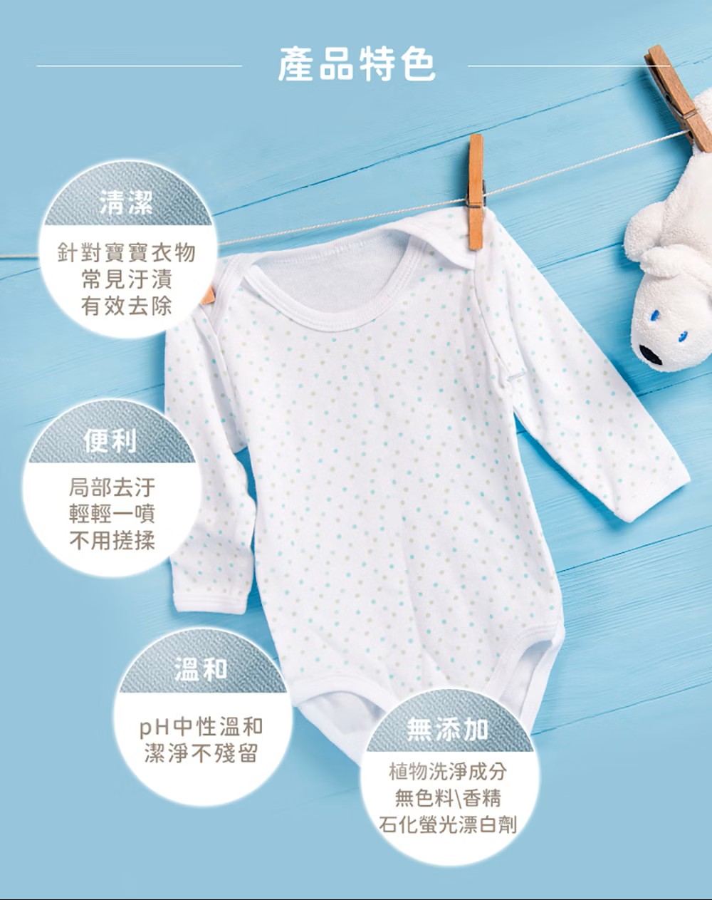 ◎溫和清潔:無刺激,適合日常清潔,守護衣物及肌膚。◎Ecocert認證:小麥桿來源APP環保洗淨成分,溫和去汙不傷手。◎七重酵素配方:結合專利去漬因子,有效去除奶垢、果汁、食物殘漬及尿便漬等多種汙漬。