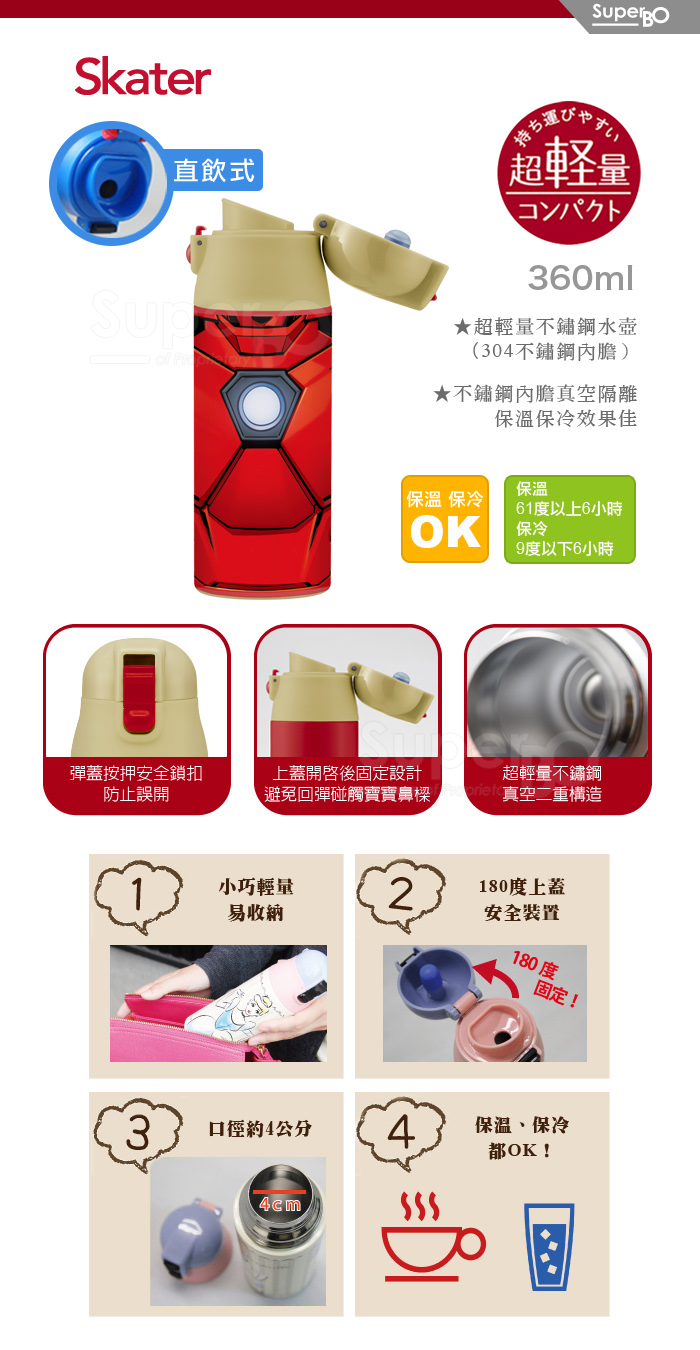 內容量:470ml 保冷效力:保溫=75度以上(6小時)、保冷=7度以下(6小時)
