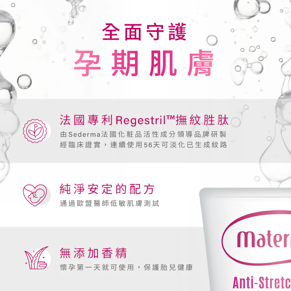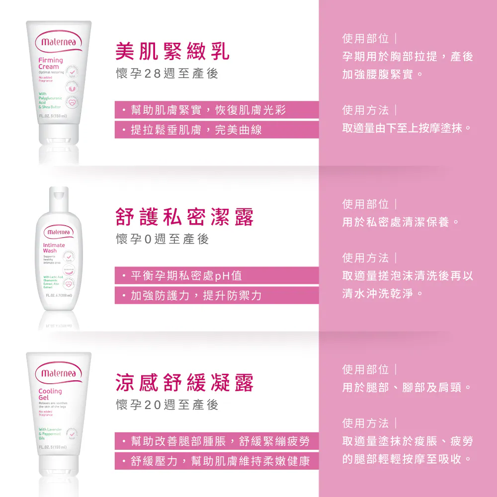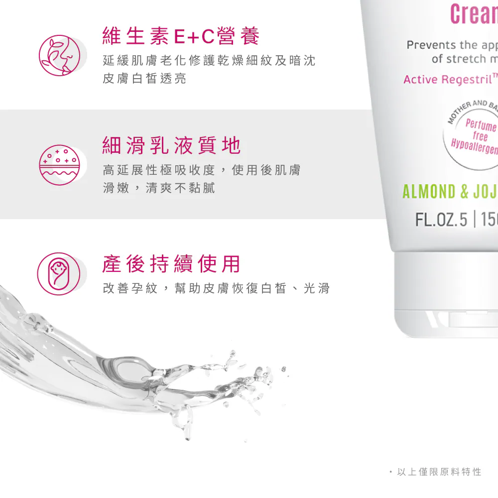堅持純淨安定、無色素、無香配方,是孕期保養的安心首選。