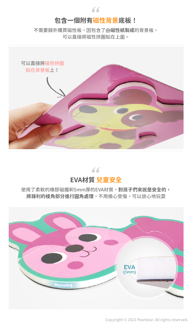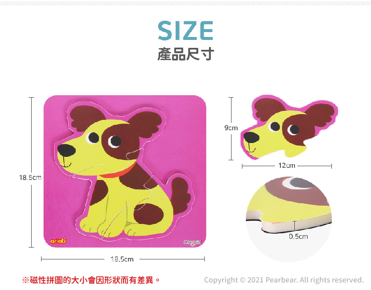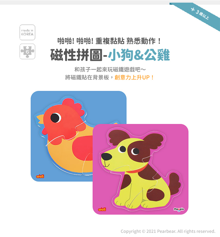‧內容物:磁性背景板1個、磁貼拼圖*2(小狗、公雞)‧發展大腦、提高注意力‧培養認知能力、詞彙量增加‧開封後一開始的氣味是揮發性的,過一段時間就會揮發消失,請放心使用。‧磁性貼的大小可能因形狀而有不同。