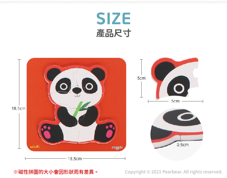 ‧內容物:磁性背景板1個、磁貼拼圖*2(大象、熊貓)‧發展大腦、提高注意力‧培養認知能力、詞彙量增加‧開封後一開始的氣味是揮發性的,過一段時間就會揮發消失,請放心使用。‧磁性貼的大小可能因形狀而有不同。