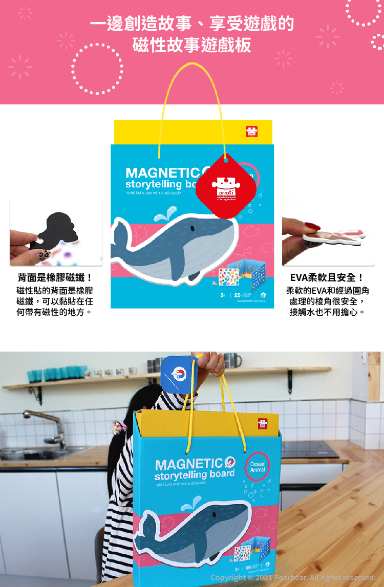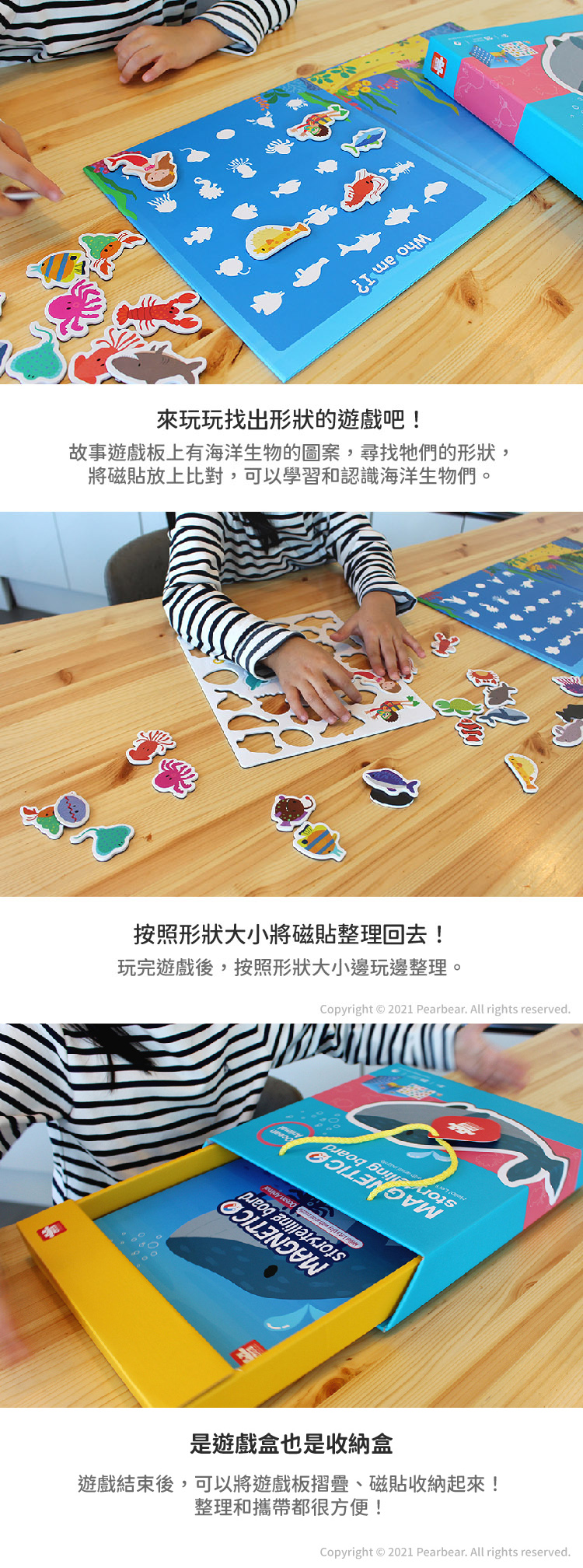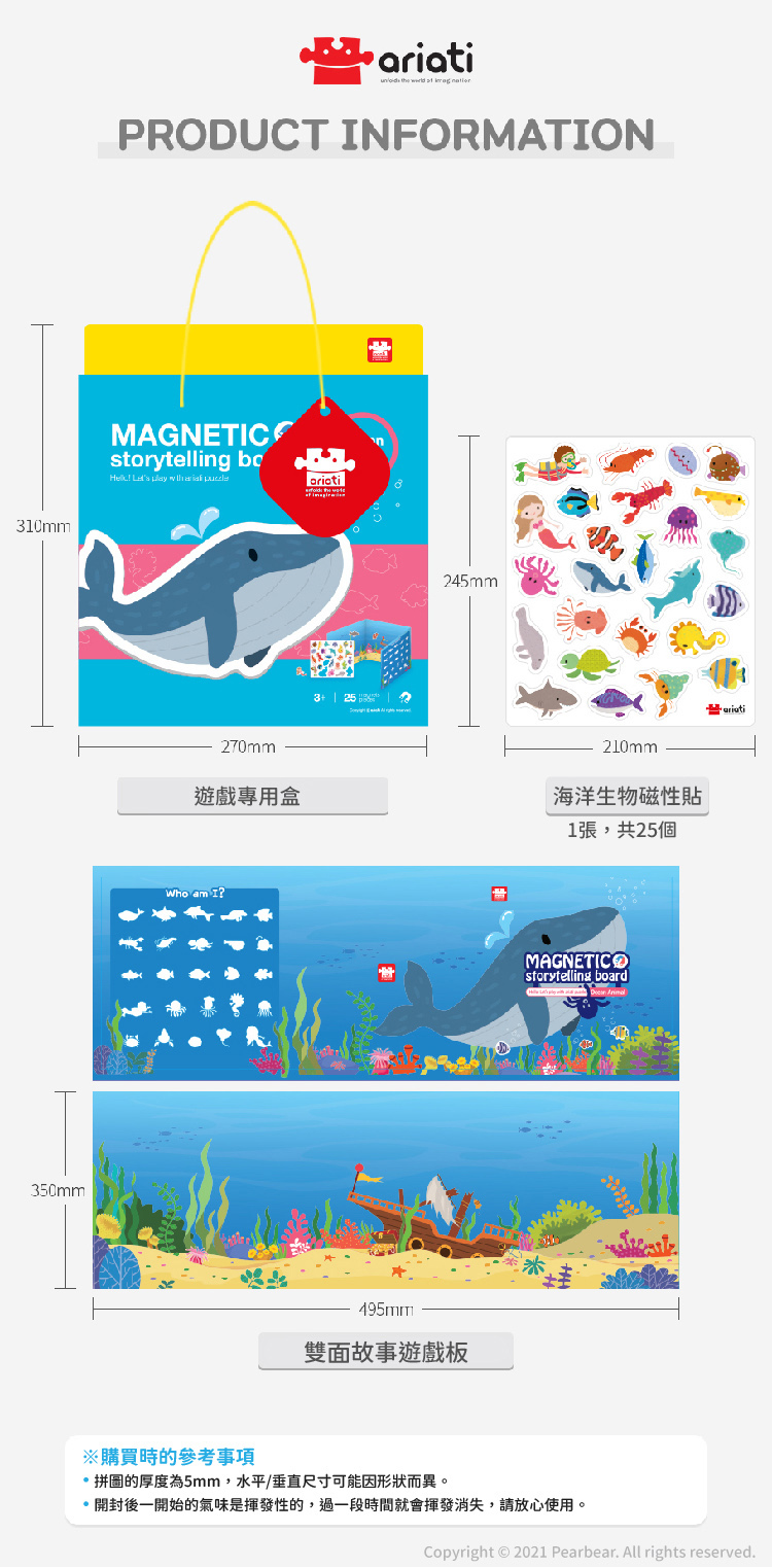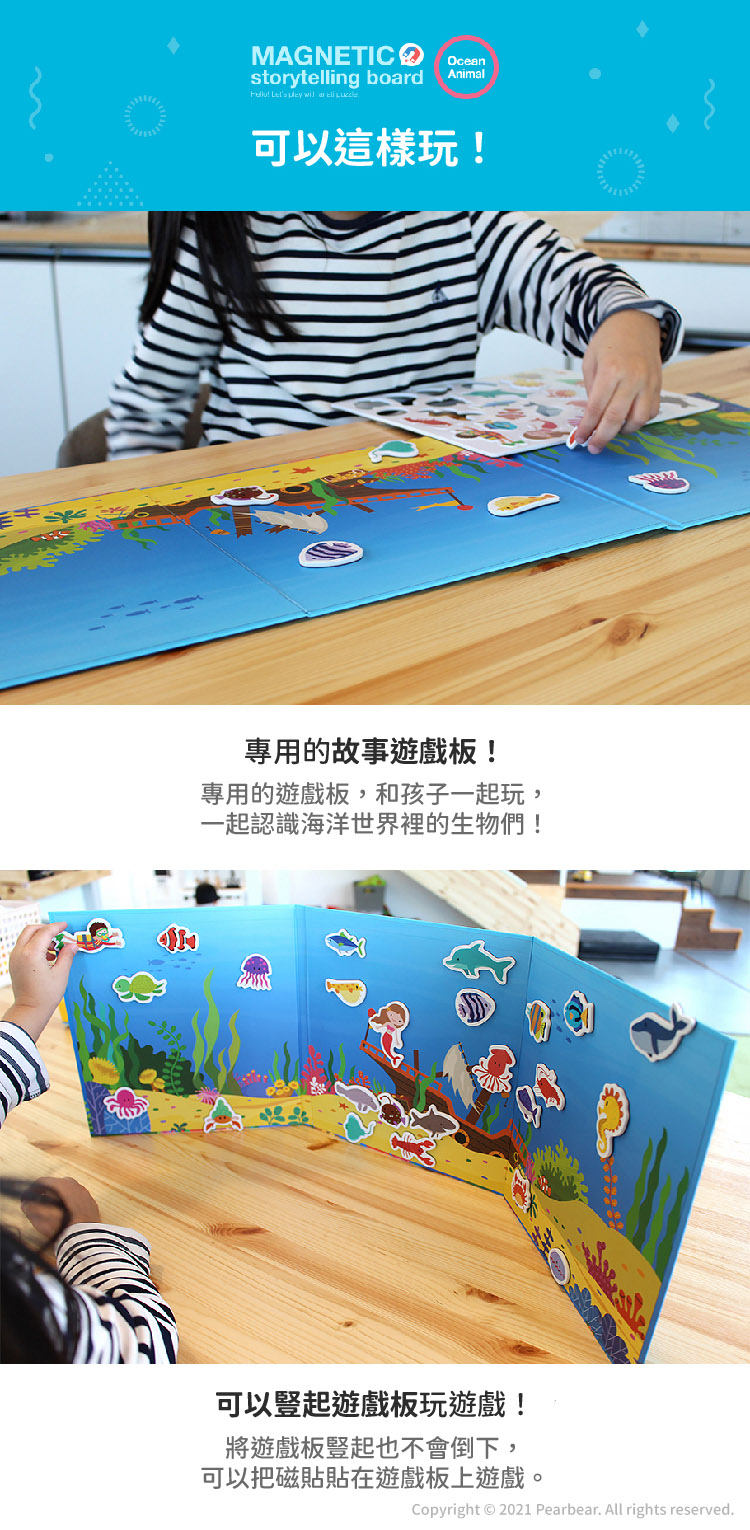‧雙面故事遊戲板x1、海洋世界生物磁性貼x25。