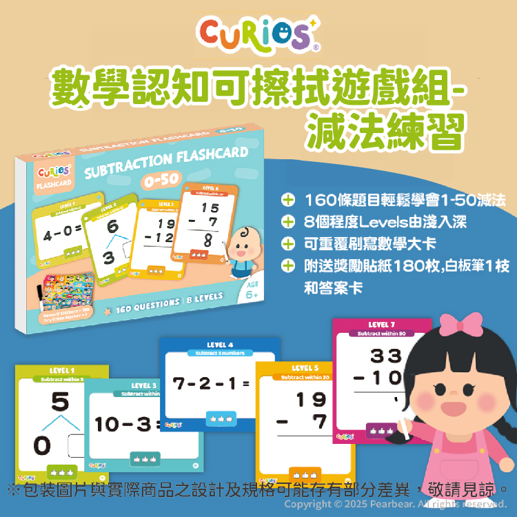 Curios 數學認知可擦拭遊戲組 減法練習