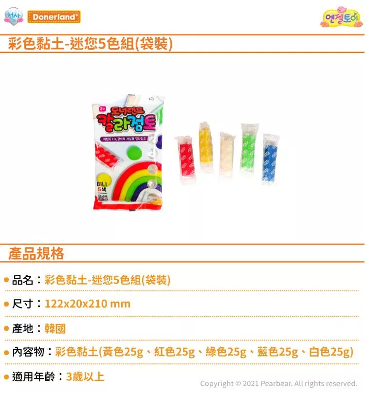 Donerland 彩色黏土 迷你5色組(袋裝)