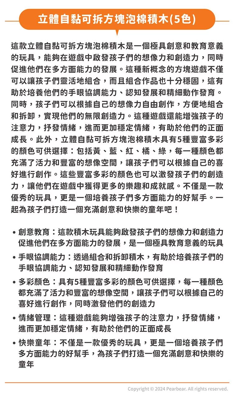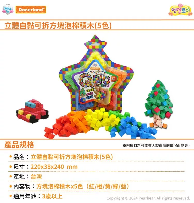 Donerland 立體自黏可拆方塊泡棉積木(5色)
