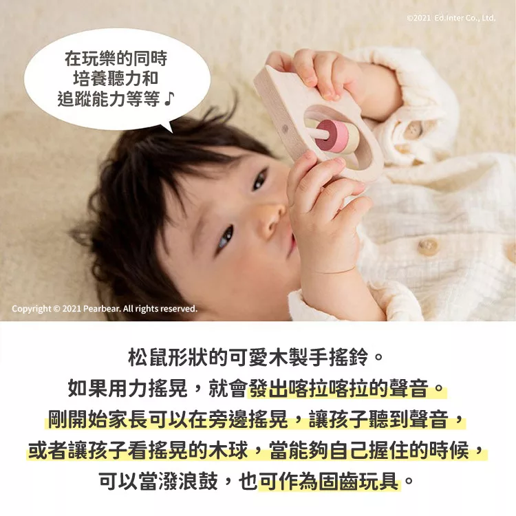 Ed.Inter NIHON系列 日本製職人手工積木-松鼠手搖鈴