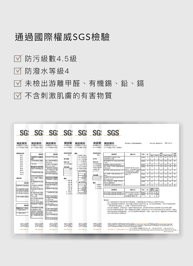 10.通過國際SGS嚴格檢驗,未檢出游離甲醛、有機錫、鉛、鎘,不含刺激肌膚的有害物質。