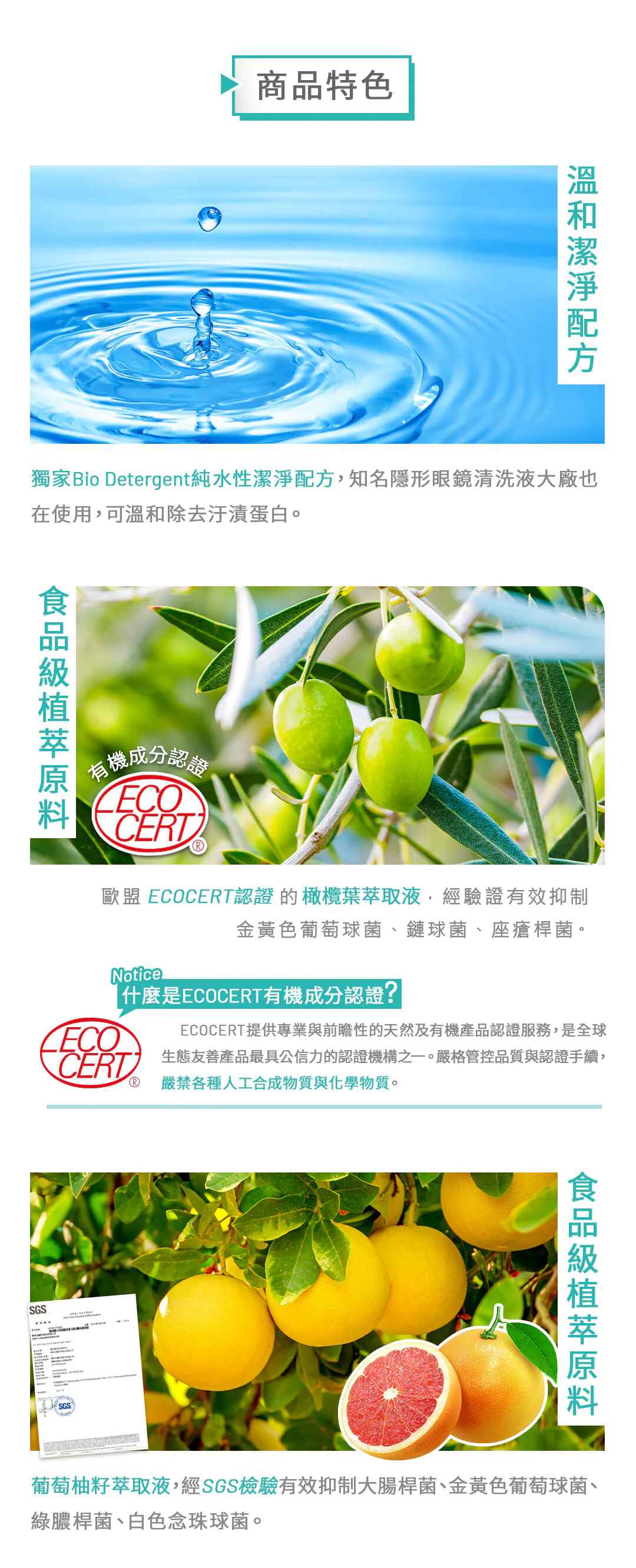 >成份溫和並採用食品級植萃原料,不含酒精、香料等有害物質,全年齡層及蠶豆症寶寶皆可安心使用。