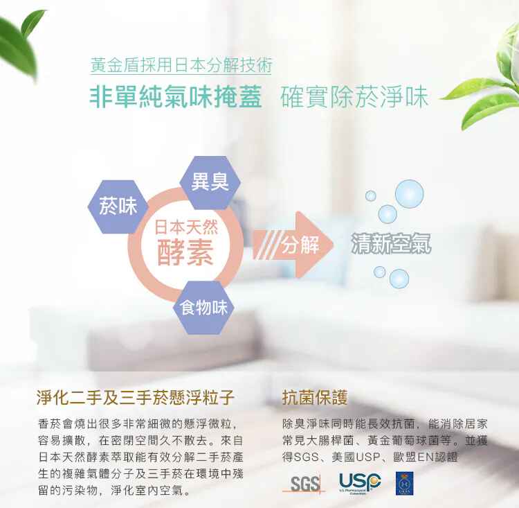 ✔日本除臭科技,消除頑強菸味,非氣味掩蓋型產品。✔同時消除居家常見病菌。✔添加清新綠茶精油,清爽舒適。