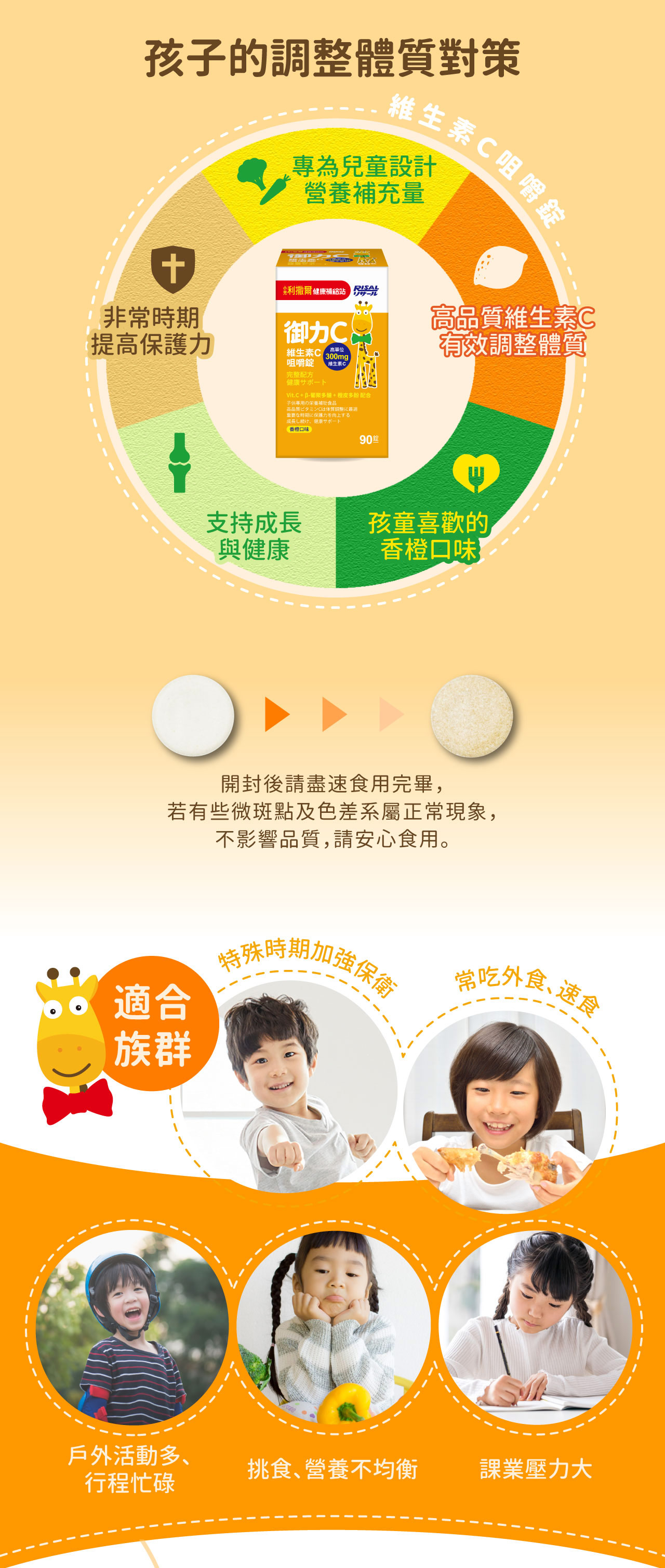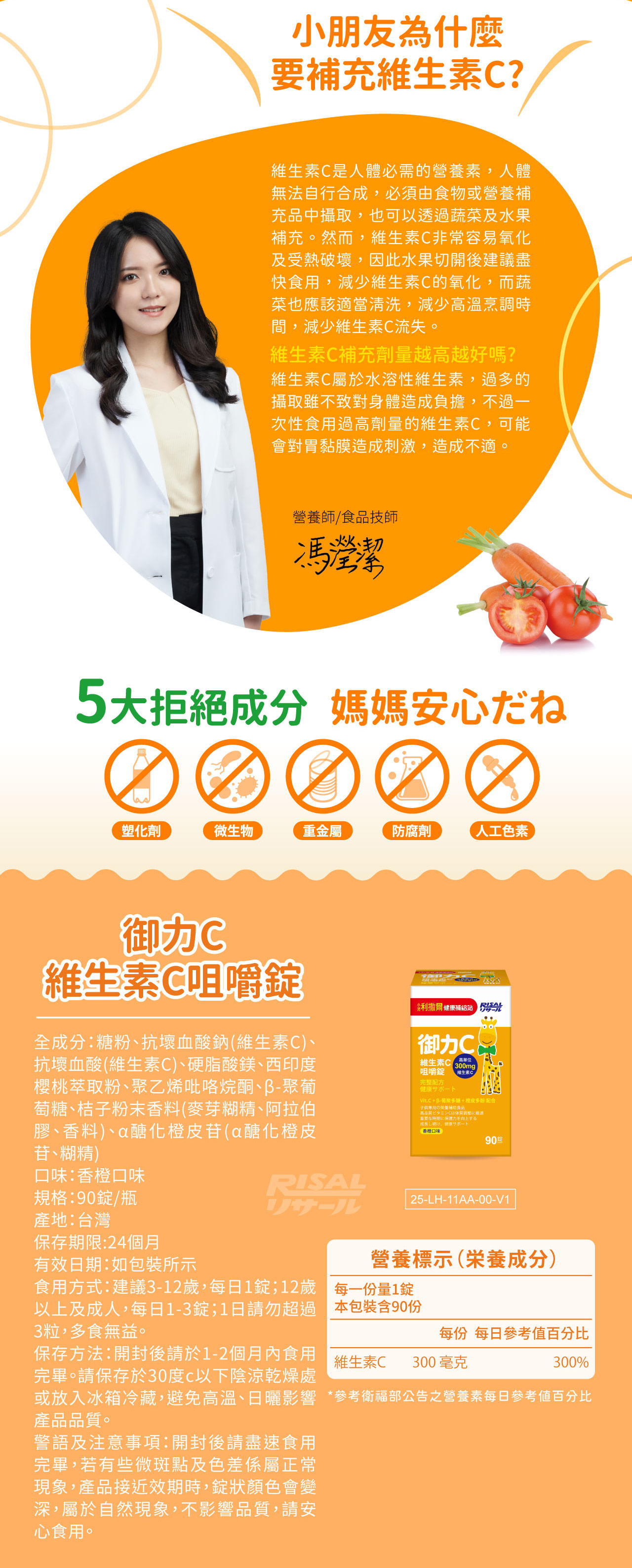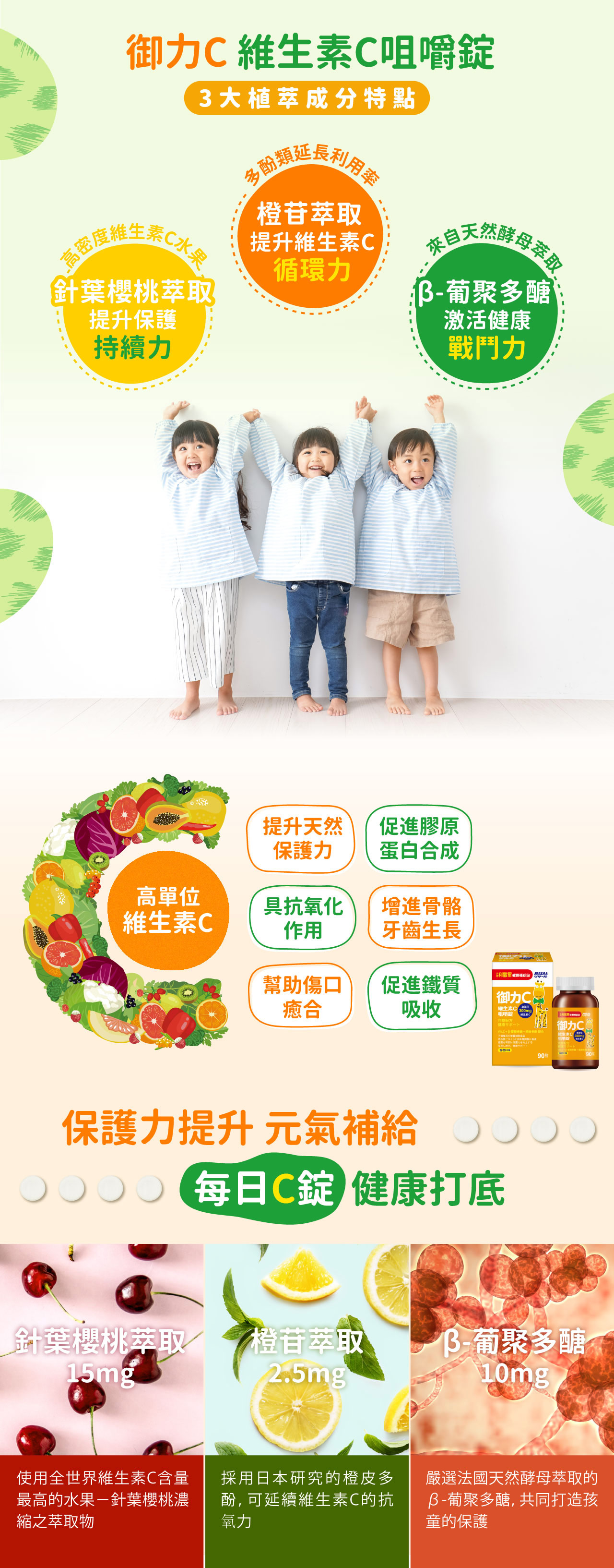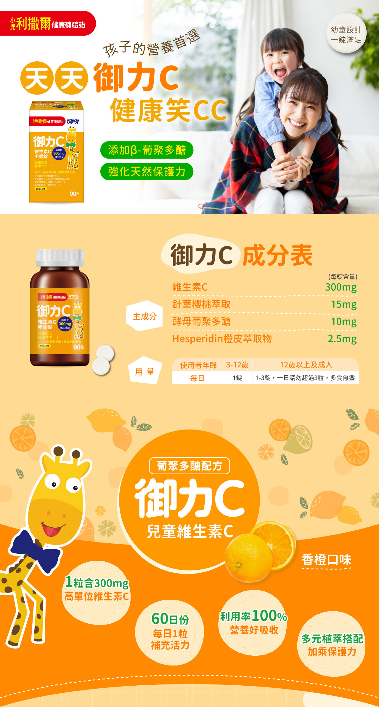 - 添加300mg高單位維生素C,維持健康抗氧力