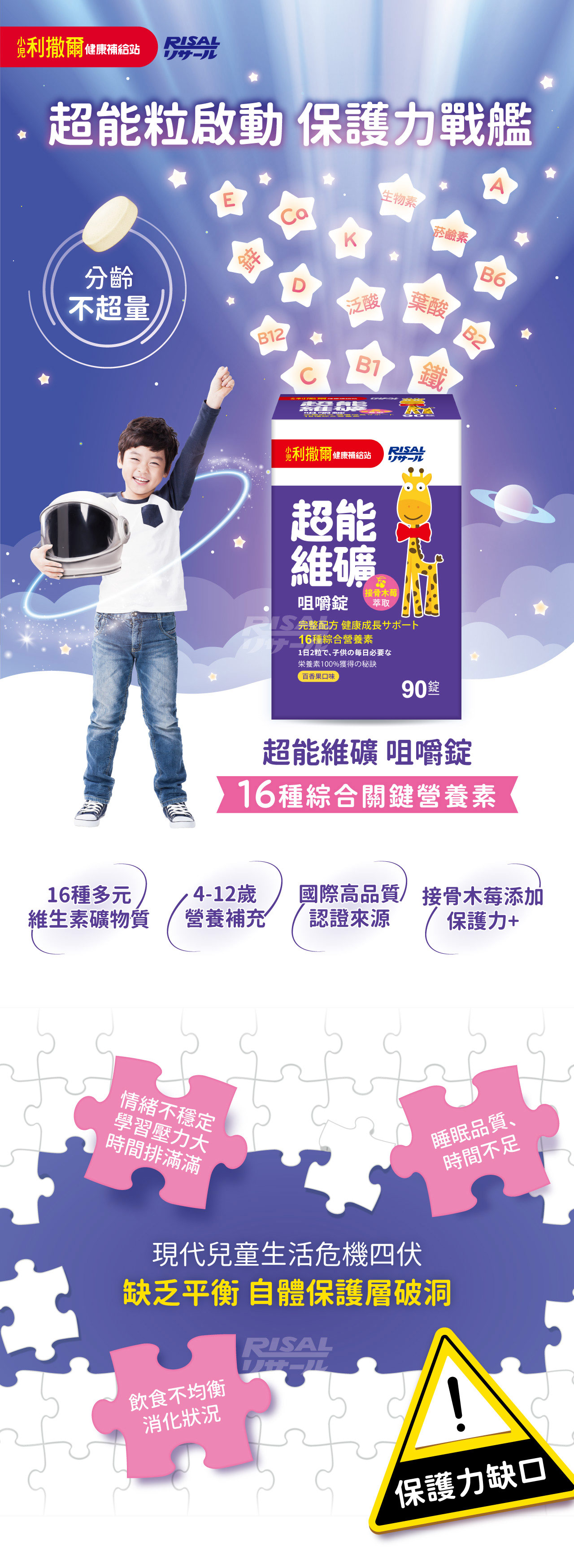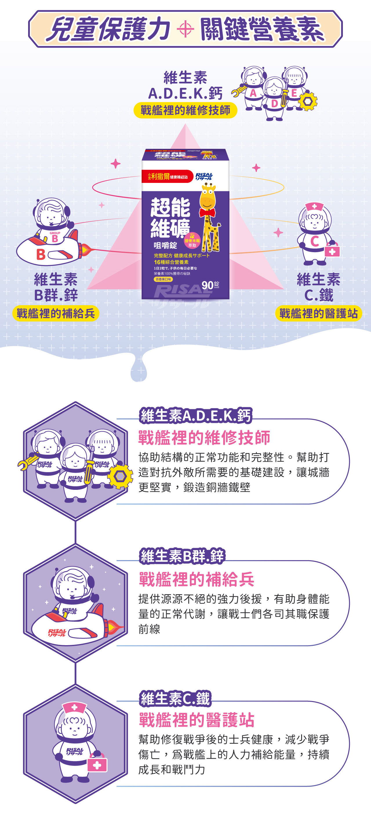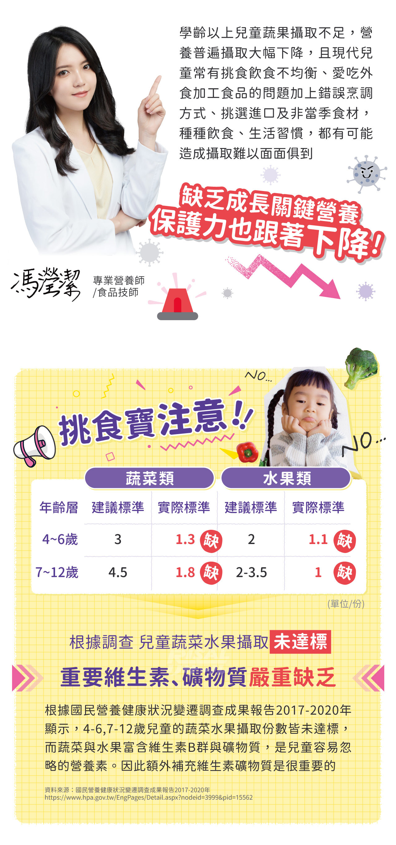 - ˙完整16種營養力-補充兒童易忽略的綜合維生素礦物質攝取,滿足成長需求。