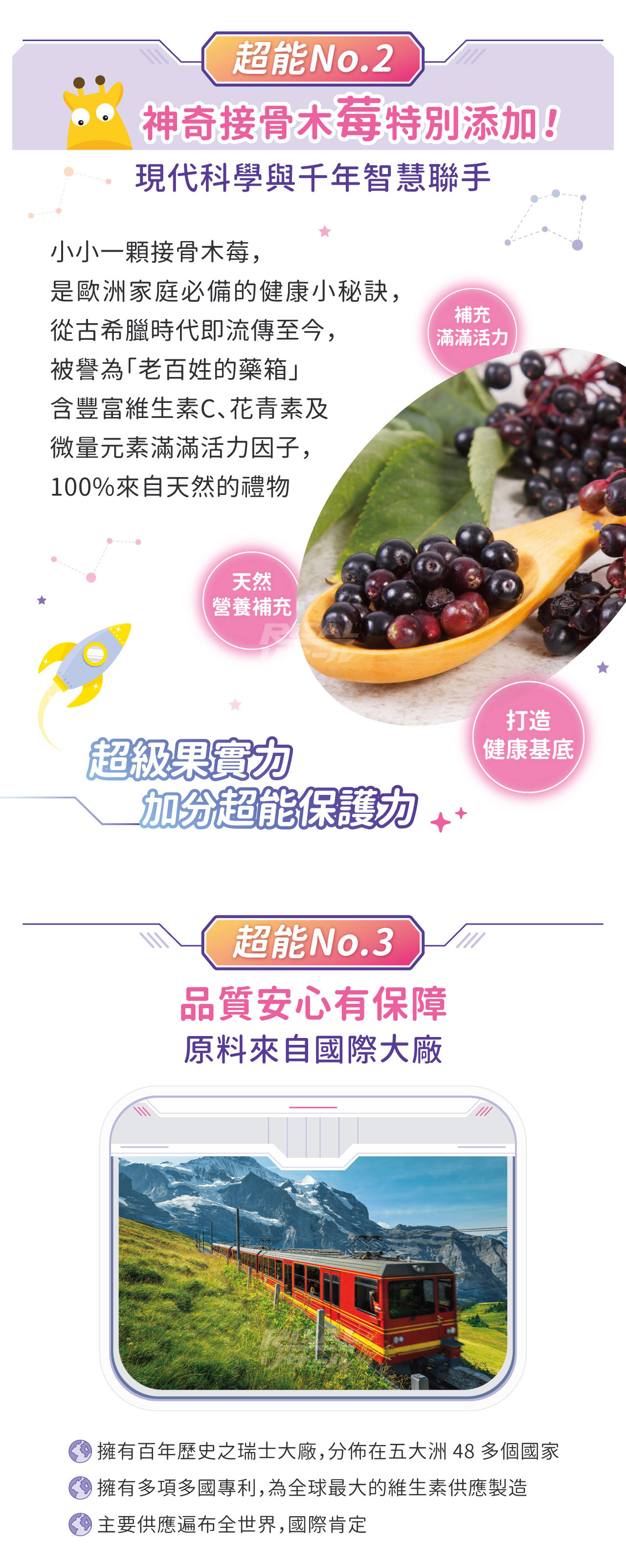 - ˙強化體質機能力-添加接骨木莓萃取,調整體質強化機能。