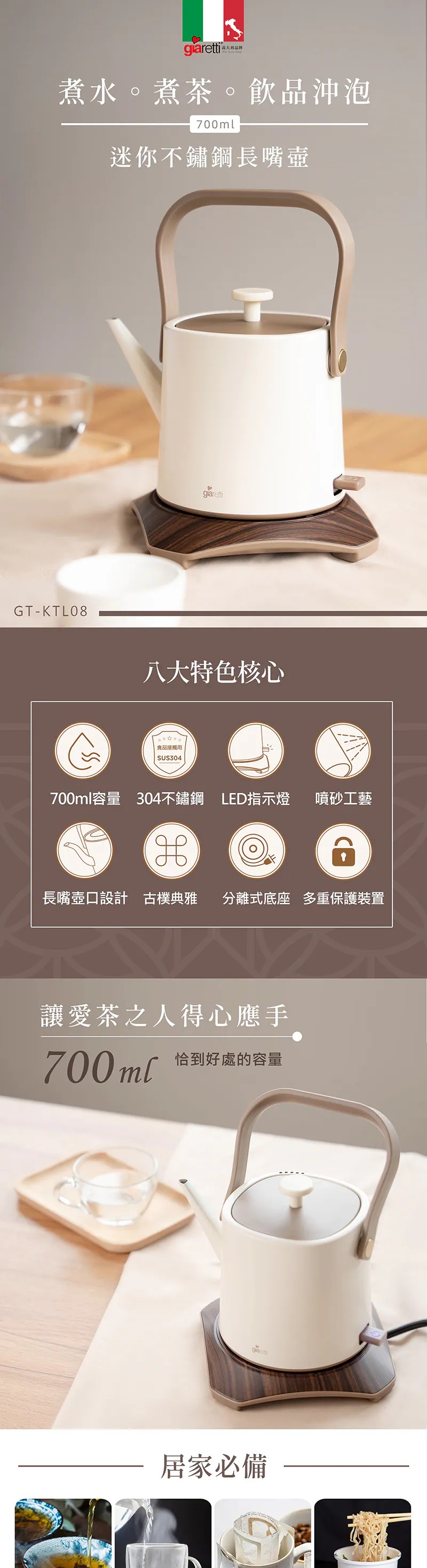 【義大利Giaretti 珈樂堤】迷你不鏽鋼長嘴壺(GT-KTL08)