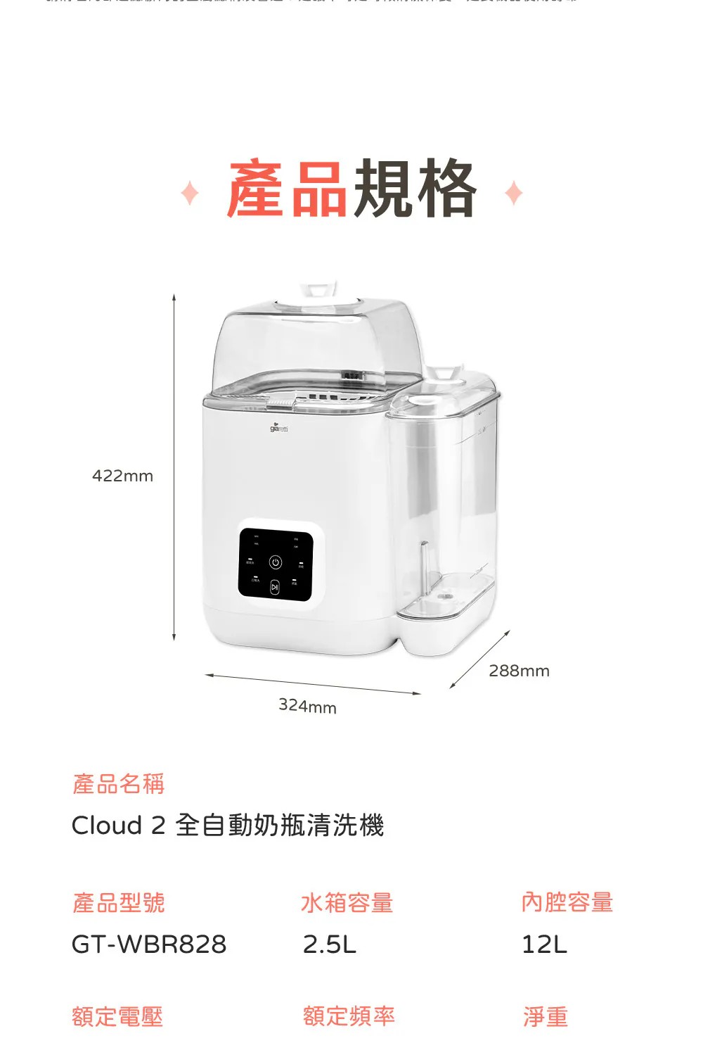 【義大利Giaretti珈樂堤】CLOUD-2 全自動奶瓶清洗機(GT-WBR828)