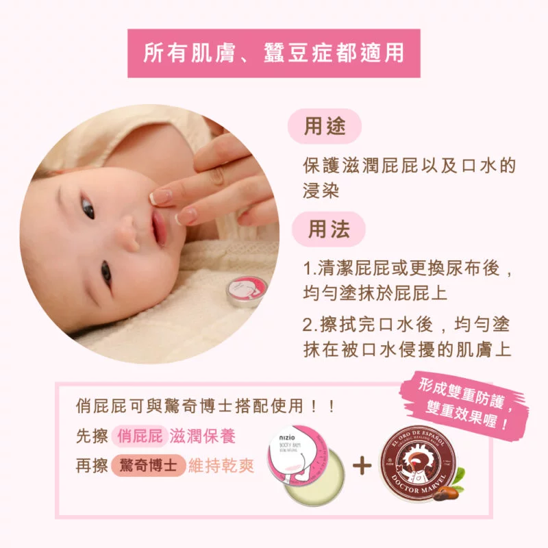 敏感肌寶寶可搭配 驚奇博士護膚膏 一起使用喔!