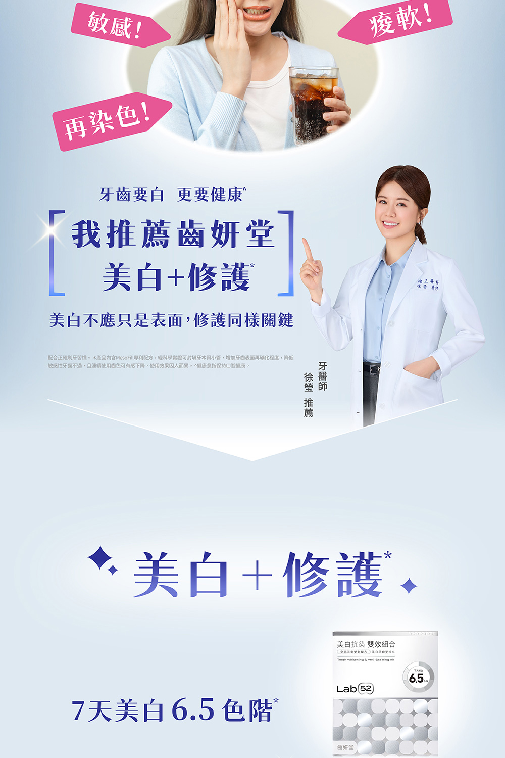 ‧ MesoFill專利護齒技術,降低美白後刺激不適**